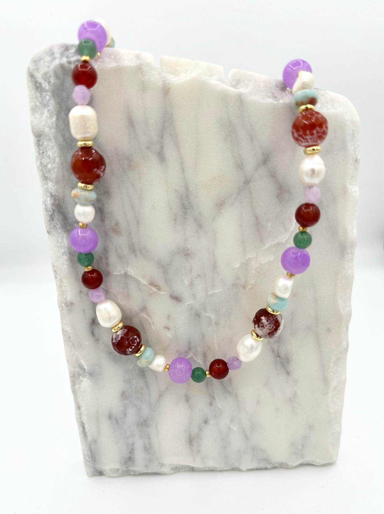Every necklace is handmade and one-of-a-kind, with natural stones – colours, shapes & sizes may vary from piece to piece (and from the photos).
